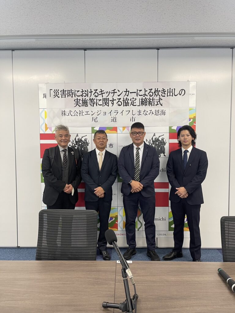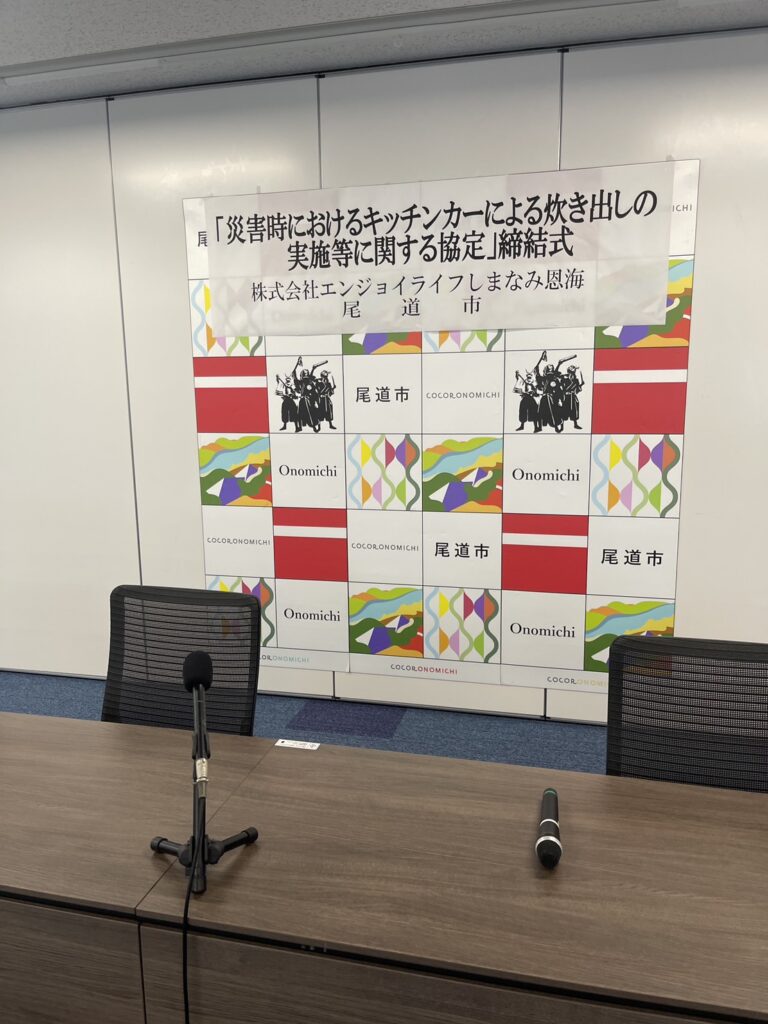 本日10月14日(火)尾道市と当協会広島支部の「株式会社エンジョイライフしまなみ恩海さん」がキッチンカーによる防災協定締結致しました。