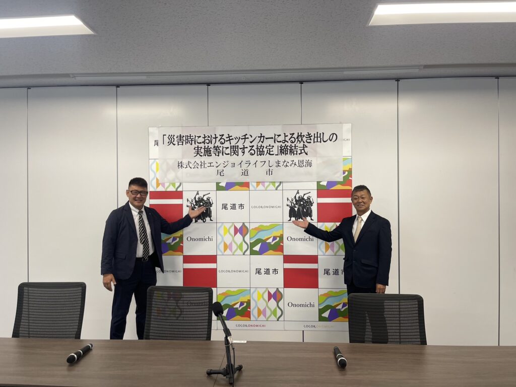 当協会の広島県支部立ち上げのメンバー・株式会社エンジョイライフしまなみ恩海さんの尽力された、キッチンカーによる地域防災への想いが広島県尾道市に注目されて防災協定締結となりました。
