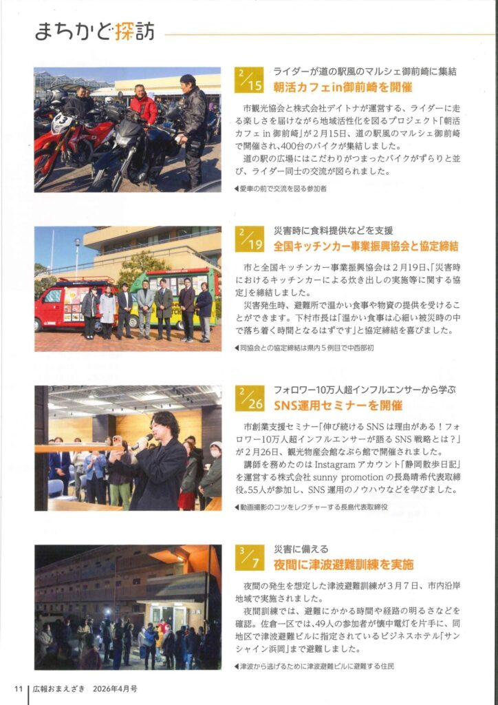 当協会と2026年2月19日に防災協定を締結いたしました御前崎市様の広報誌に協定締結式の様子について記事が掲載されました。