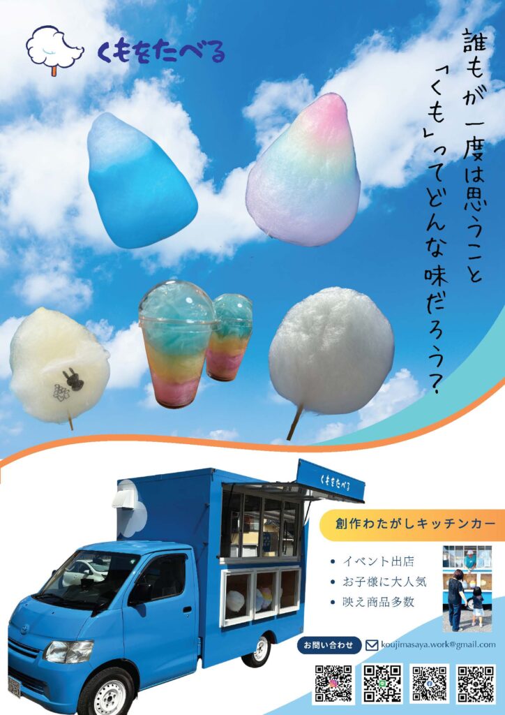 くもおじさんオリジナルの綿菓子をはじめ、地元の人気お弁当店・惣菜店の商品をOEM販売し地域コミュニティを新しい形で営業販売・発信していきます!